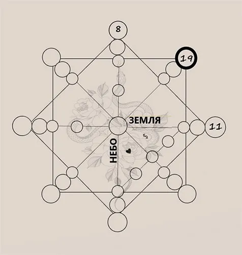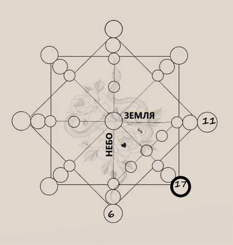 Затем, чтобы получить энергию рода по мужскому роду внизу, складываем энергию кармы прошлых жизней с энергией материальной кармы (11+6=17).