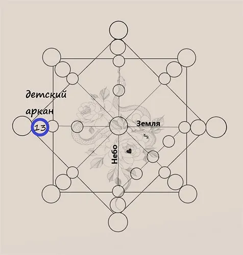 Для того чтобы получить энергию детского аркана, необходимо сложить энергию родительского аркана и число рождения (портрет личности) – 8+5=13.