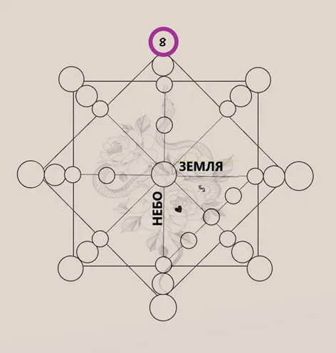 Это вторая базовая энергия, олицетворяет связь с Высшим, с Вселенной. Подарок от Высших Сил. Энергия представлена верхней центральной точкой в матрице и является месяцем рождения в дате ребенка. Энергий в этой точке может быть только 12, не больше. Как и месяцев в году.