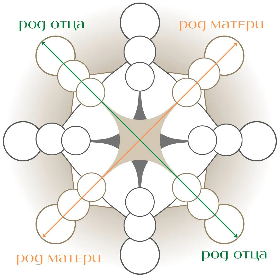 Линия мужского/женского рода показывает какими талантами обладает род отца/матери, какие качества были наработаны предками и переданы нам для выполнения родовых и личных задач (сила рода, таланты, верхние ключи матрицы). Мы это должны приумножить, развить и тем самым выполним духовную задачу по каждому роду.