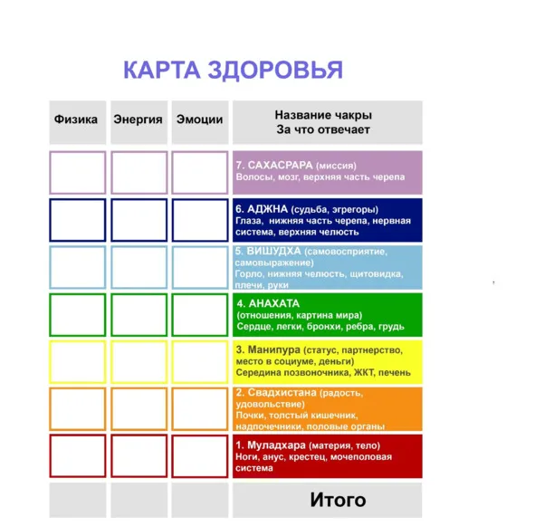 Карта здоровья. Чакры.