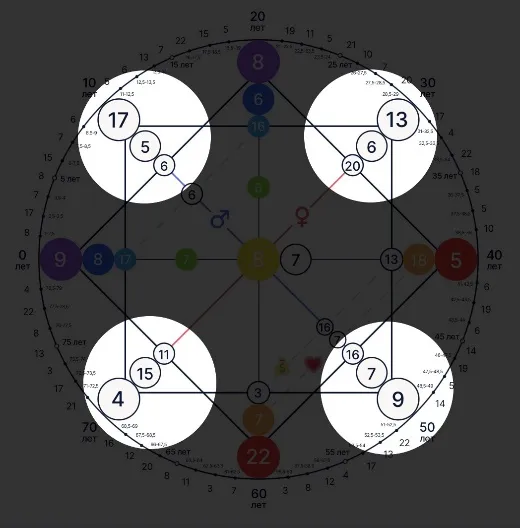 «Рассчитывается путем сложения соседних энергий. При расчете двигаемся по часовой стрелке от дня рождения.