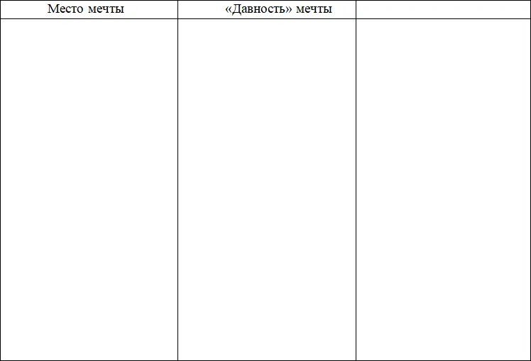 В ней мы пишем предполагаемый срок, если он еще есть, когда, по Вашему разумению, Вы все-таки сможете посетить место своей мечты или воплотить какие-то из прежних, забытых желаний.
