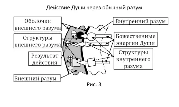 Энергия Света проходит через оболочки нашего разума, попадая к нам как бы в «ловушку» (рисунок 26 [1]). Эту «пойманную» энергию Света человек своим умом тут же присваивает себе и использует по своему усмотрению в соответствии со своими структурами разума. Если сказать более точно, то это внешняя природа использует её даже без нашего разумного вмешательства. Такое личное использование божественной энергии, попавшей к нам в разумную «ловушку», позволяет нам быть индивидуальными самостоятельными существами, но мы ими ещё до конца не стали.