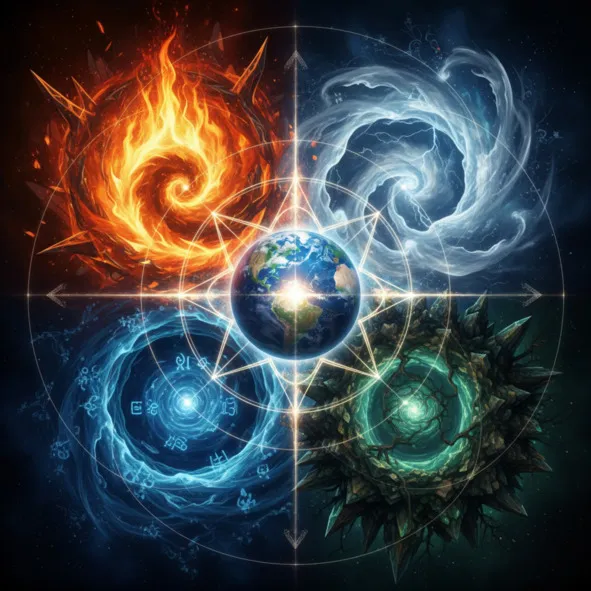 Мы коснулись невидимых сетей, полей и вибраций. Но есть и другой, более древний способ понять энергию места – через язык четырех стихий: Земли, Воды, Воздуха и Огня. Это не просто физические вещества, а четыре великих архетипа, четыре состояния энергии, из которых соткан наш мир.