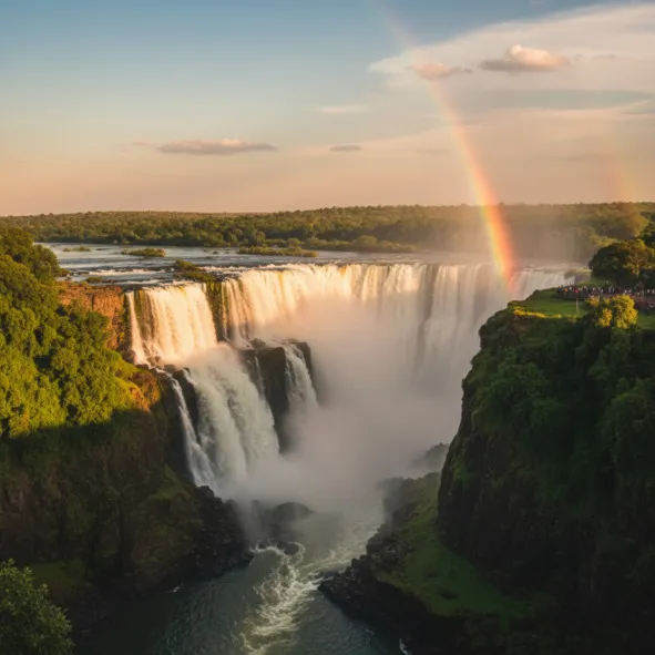 Это не просто водопад, а гигантская рана на теле планеты, в которую с оглушительным ревом низвергается целое море. Это место первобытной, стихийной мощи, где земля дрожит, воздух превращается в водяную пыль, а над бездной вечно танцуют радуги.