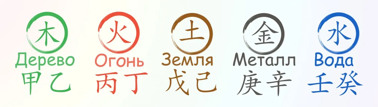 В Небе взаимодействия этих стихий называют «Небесными стволами» и каждую из них дополнительно разделяют по иньско-янскому принципу, поэтому их не пять, а десять.