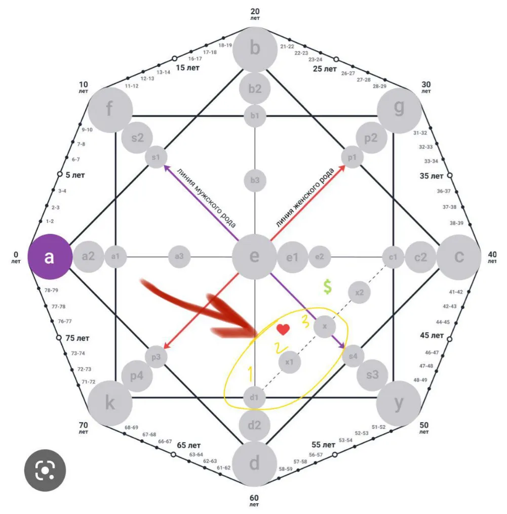 5. d1 – значение точки d+е= d1 в моем случае это 17+7=24=2+4=6