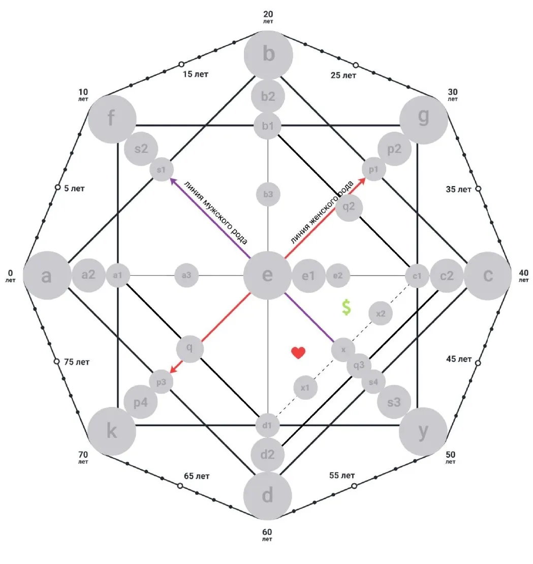 Точка d1 – это точка кармы. Она отвечает на вопрос “Ваш самый ужасный поступок в прошлой жизни по отношению к другим людям” d1 = d + e Напоминаю, работаем по системе 1-22.