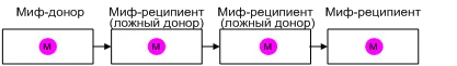 Схема 3. Независимые цепи реципиентов, образованные единым донором.