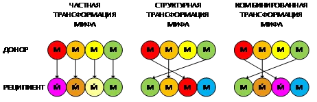 А теперь разберем более подробно, что из себя представляют частные и структурные трансформации мифа.