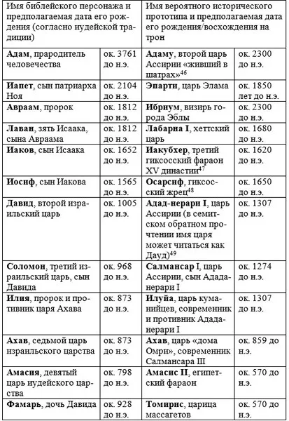 Таблица 3. Библейские персонажи и их возможные лингвистические прототипы.