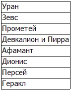 Из общей генеалогии мы выбрали ряд героев, которые войдут в нашу таблицу и выставлены в приблизительной хронологической последовательности.