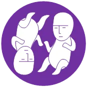 Вторая фиолетовая пиктограмма – изображение мифологемы украденного первородства. Пиктограмма символизирует конфликт двух братьев, пребывающих еще в утробе матери. Отметим этой пиктограммой библейского Иакова, иранского Ахуру Мазду, греческого Геракла, а также первую книгу Махабхараты. Пиктограмма достаточно разбросана по таблице, и невозможно охарактеризовать, кто ее реальный обладатель, хотя бы условно.