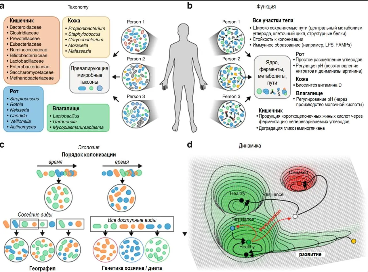 Рис.2. Возможные определения здорового микробиома: состав, функция, динамика и экология [31]