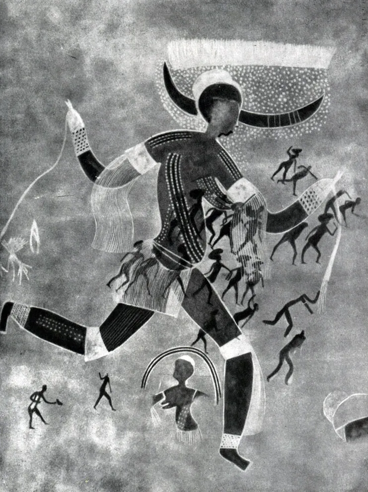 Богиня с рогами, или «Белая дама». Наскальная живопись в Тассили. Ауангет, Сахара