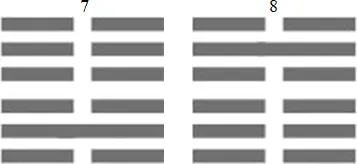 Непонимание Книги Перемен, как правило, происходит при различном толковании значения одинаковых черт, одинаково расположенных в разных гексаграммах. Для примера рассмотрим толкование черт гексаграмм 7 и 8.