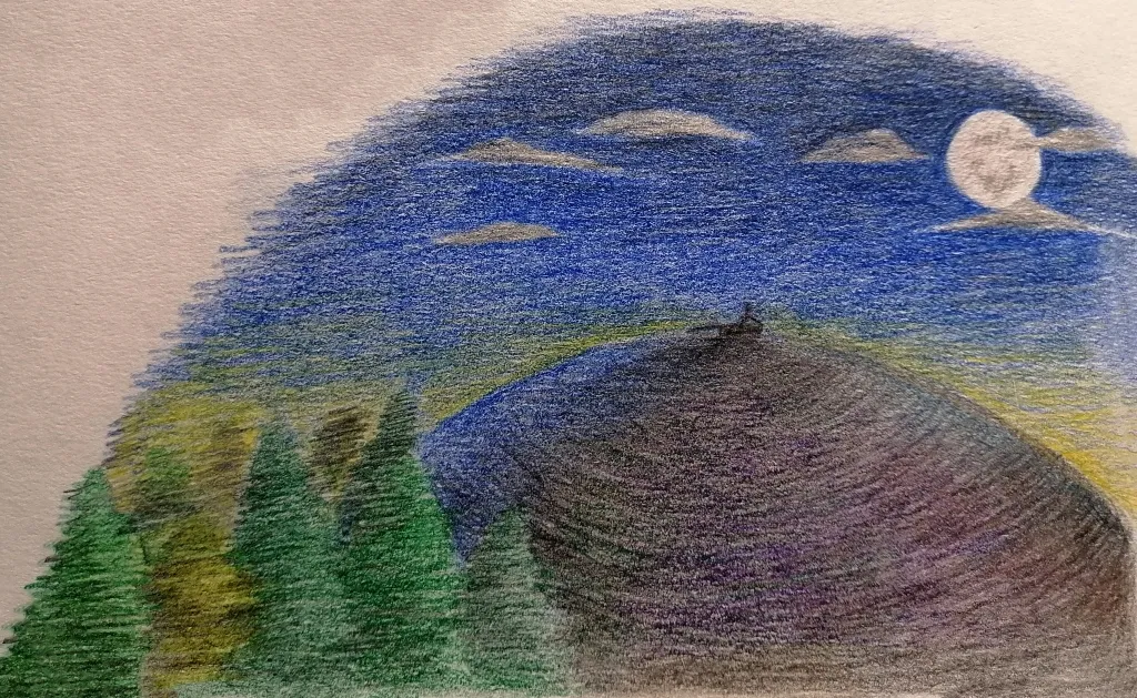 Иду по улице. Поднимаю взгляд к небу и понимаю, началось! Снова появляются звезды. Надо мной разворачивается психоделическая картина. Огромными яркими кляксами разгораются созвездия, расходясь цветными кругами по небу. Вижу, как летят кометы, падают метеориты. Всё кружится, перетекает, движется. Всё ярче и ярче. Опасность! От неба и звёзд исходит угроза. Нужно срочно искать укрытие, пока они не разгорелись на всю мощность. Передвигаться становится всё тяжелее, руки и ноги наливаются свинцом. Кажется, что сам воздух загустевает и замедляет движение. Быстрее. Нужно прятаться.