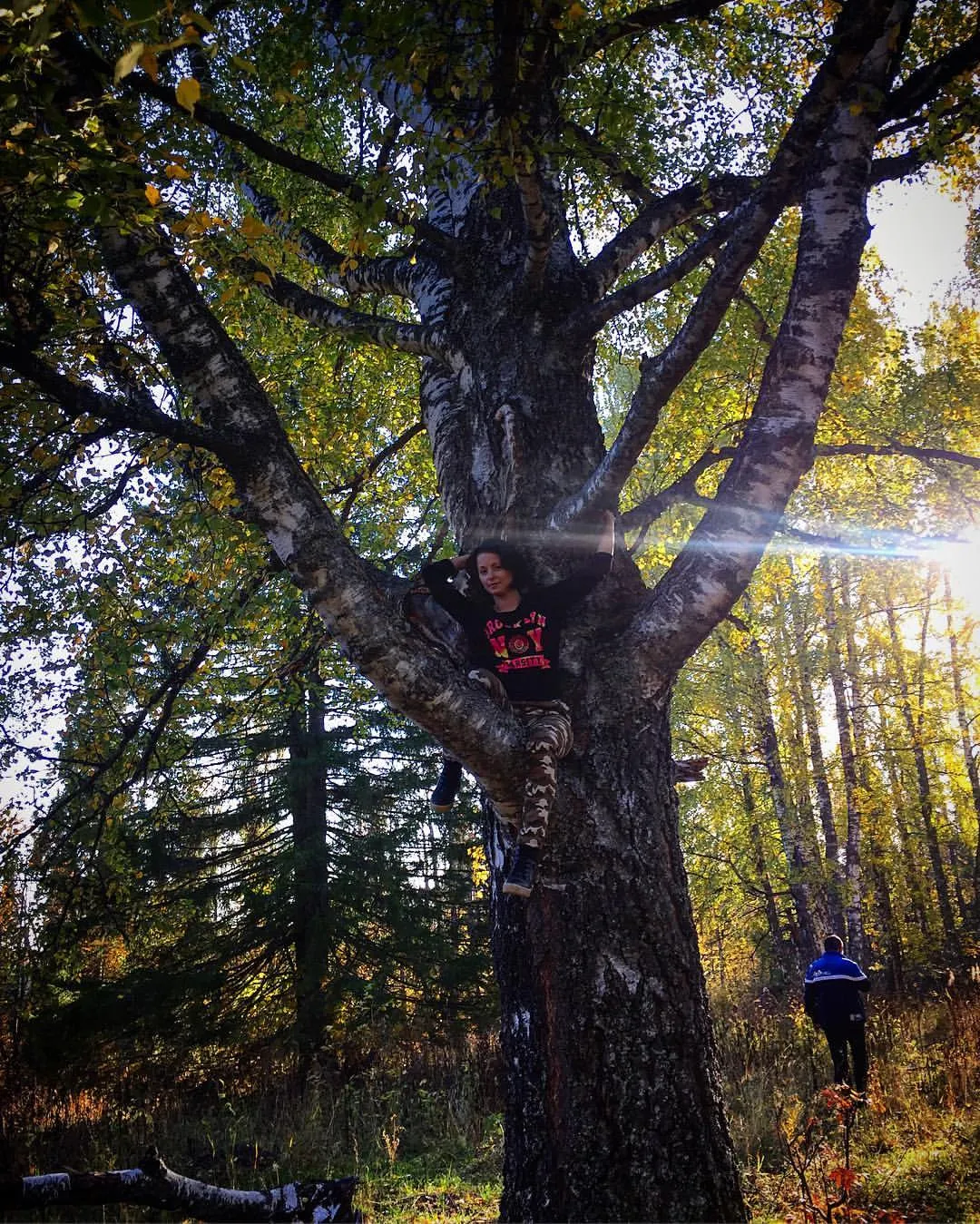 Берёза была огромных размеров, её невозможно обхватить руками и возраст её, наверное, перевалил за лет семьдесят.