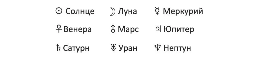Названия и символы девяти планет2: