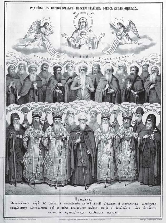 Свв. подвижники Афонские. Иллюстрация из Афонского патерика. (СПб., 1860).