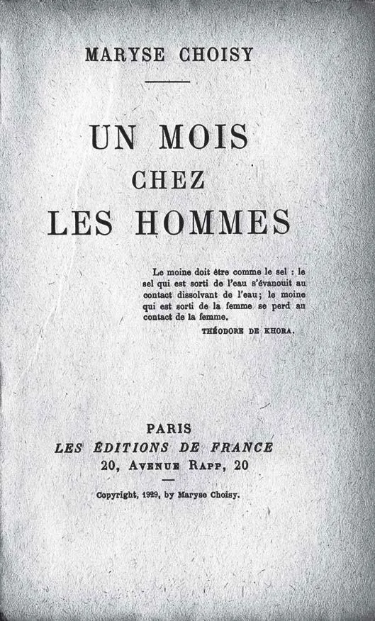 Титульный лист первого издания книги Маризы Шуази «Un mois chez les hommes». Paris, 1929.
