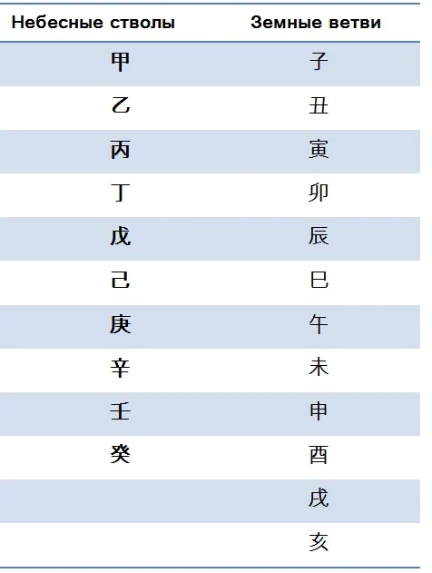Отсчитываем по одной позиции вверх по таблице от 丁 и 丑, получаем следующее: первым столпом Большого такта удачи будет 丙子, вторым – 乙亥, третьим – 甲戌.