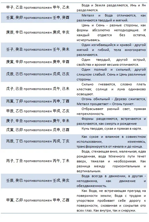 Важно знать: Эти пары столпов никогда не бывают совместимы, столкновения между ними подобно схватке между жизнью и смертью, являют собой в реальности и в карте разные формы звучания.