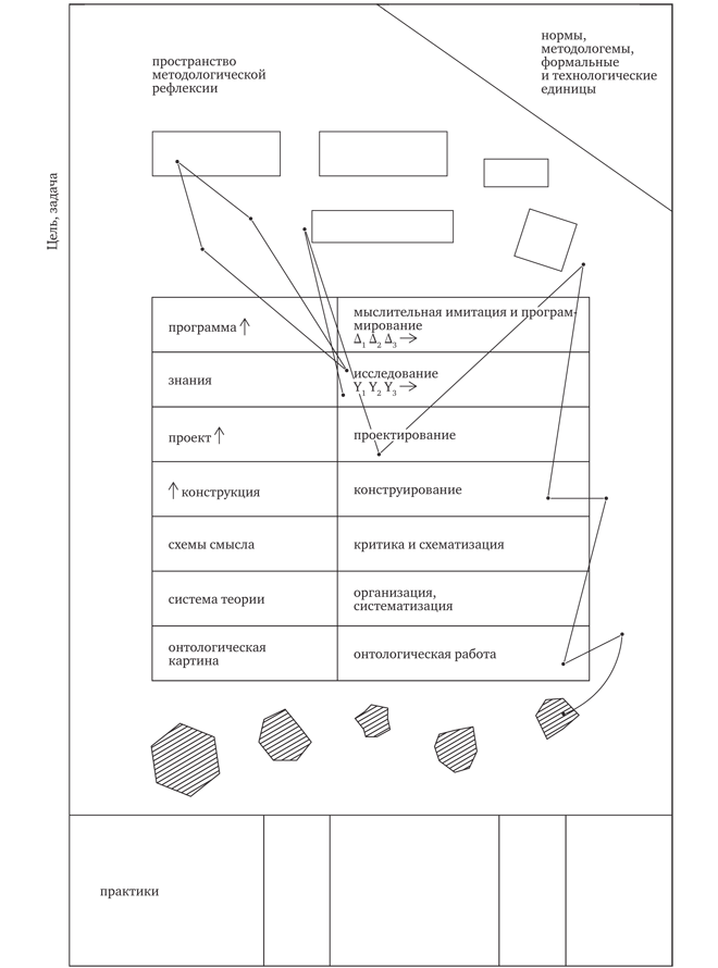 Я зарисовываю пространство моей мыслительной работы и предполагаю, что таким образом (пусть неполно, неточно) я задаю каким-то образом то, с чем буду иметь дело, а вместе с тем и средства для организации моего мышления и систематизации знаний, которые я буду получать (см. рис. 4).