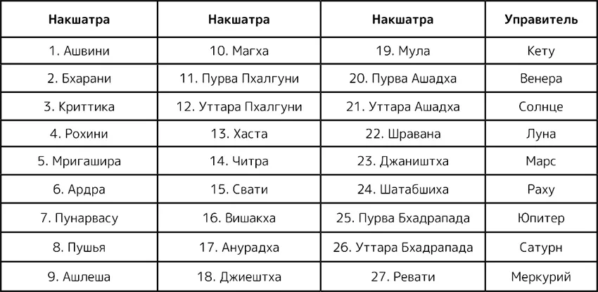 Энергия этой планеты-управителя влияет на характеристику накшатры. Каждая планета и восходящий знак (лагна, асцендент) имеют свою управляющую накшатру. Таким образом можно смотреть, как ваша накшатра взаимодействует с накшатрами других людей, и какой результат это может дать (что-то позитивное или негативное, опасное). Состояние здоровья, развитие карьеры, личные отношения можно смотреть по накшатрам.