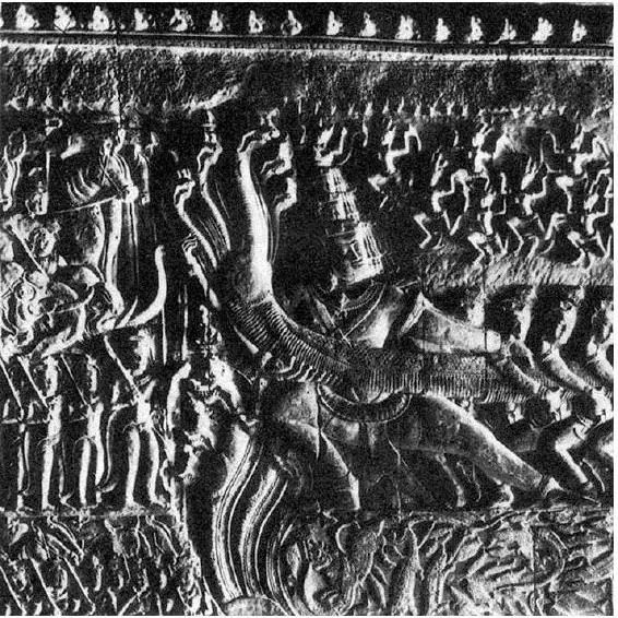 Боги, пахтающие океан. Фрагмент барельефа из Ангкор-Вата
