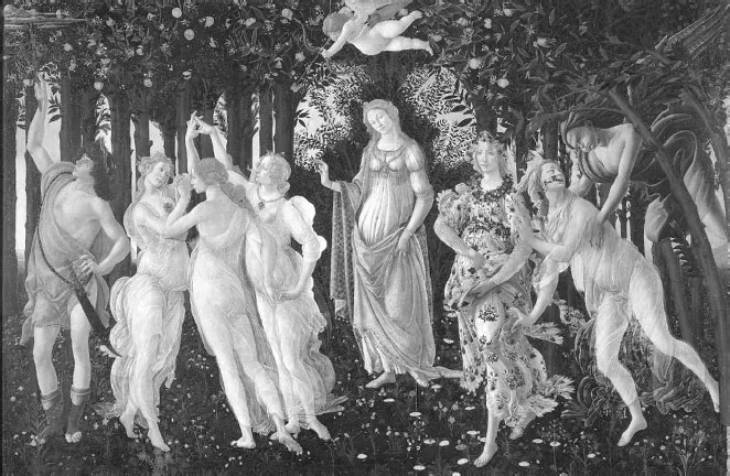 В работе «Весна» С. Боттичелли мы можем наблюдать танцующих граций, которые «намекают на благодатное влияние Солнца и планет Юпитер и Венера»14.