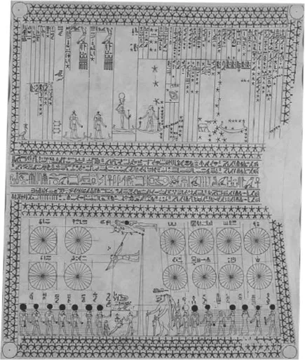 Схема-зарисовка астрономического потолка гробницы Сенмута с изображением различных деканов, а также персонифицированными изображениями звезд и созвездий. Находится в Метрополитен-музее, Нью-Йорк
