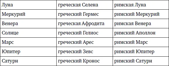 Мы не будем уходить в подробности становления астрологии, важно лишь отметить, что в Риме впоследствии сформируется большая часть известных и привычных нам названий планет. «Римляне заимствовали систему „божественных“ названий планет у греков, заменив греческих богов аналогичными римскими»10.