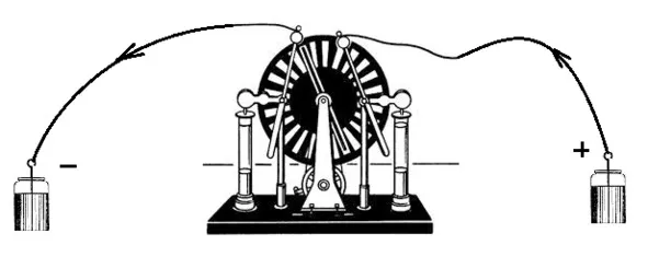 Итак, пошла генерация. Что происходит? Откуда в массовом порядке берутся гравитоны? Они берутся из банки – из лейденской банки, – конденсатора. Они, эти гравитоны вытягиваются из одной банки и переносятся во вторую банку. На внутреннюю обкладку этой банки. Соответственно, на внутренней обкладке возникает избыток гравитонов, и банка заряжается отрицательно. В первой банке, откуда гравитоны вытягиваются, плотность гравитонов падает и банка заряжается положительно. На внешних обкладках, соединенных металлической перемычкой, происходит переток с обкладки одной банки на другую и внешние обкладки заряжаются противоположными знаками. Это нужно для соблюдения энергетического баланса – суммарная плотность энергий в банках остаётся на неизменном уровне. А мы крутим ручку.