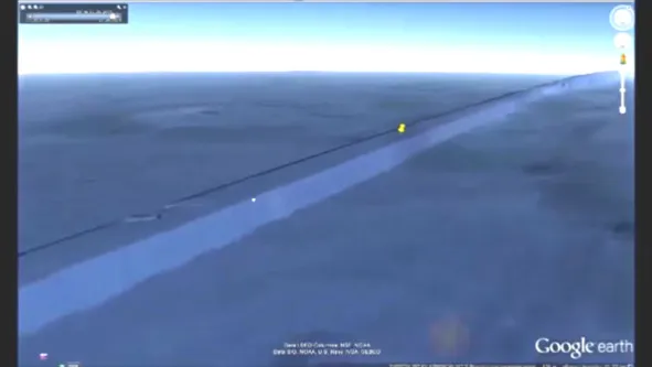 А пересечения стены и борозды (на видео) это след от исследовательского судна с эхолотом, поэтому детализация более чёткая чем со спутника. Это вы наверняка и сами знаете. Если сами не догадались, что за стена, то подскажу. Посмотрите сначала обычный глобус-