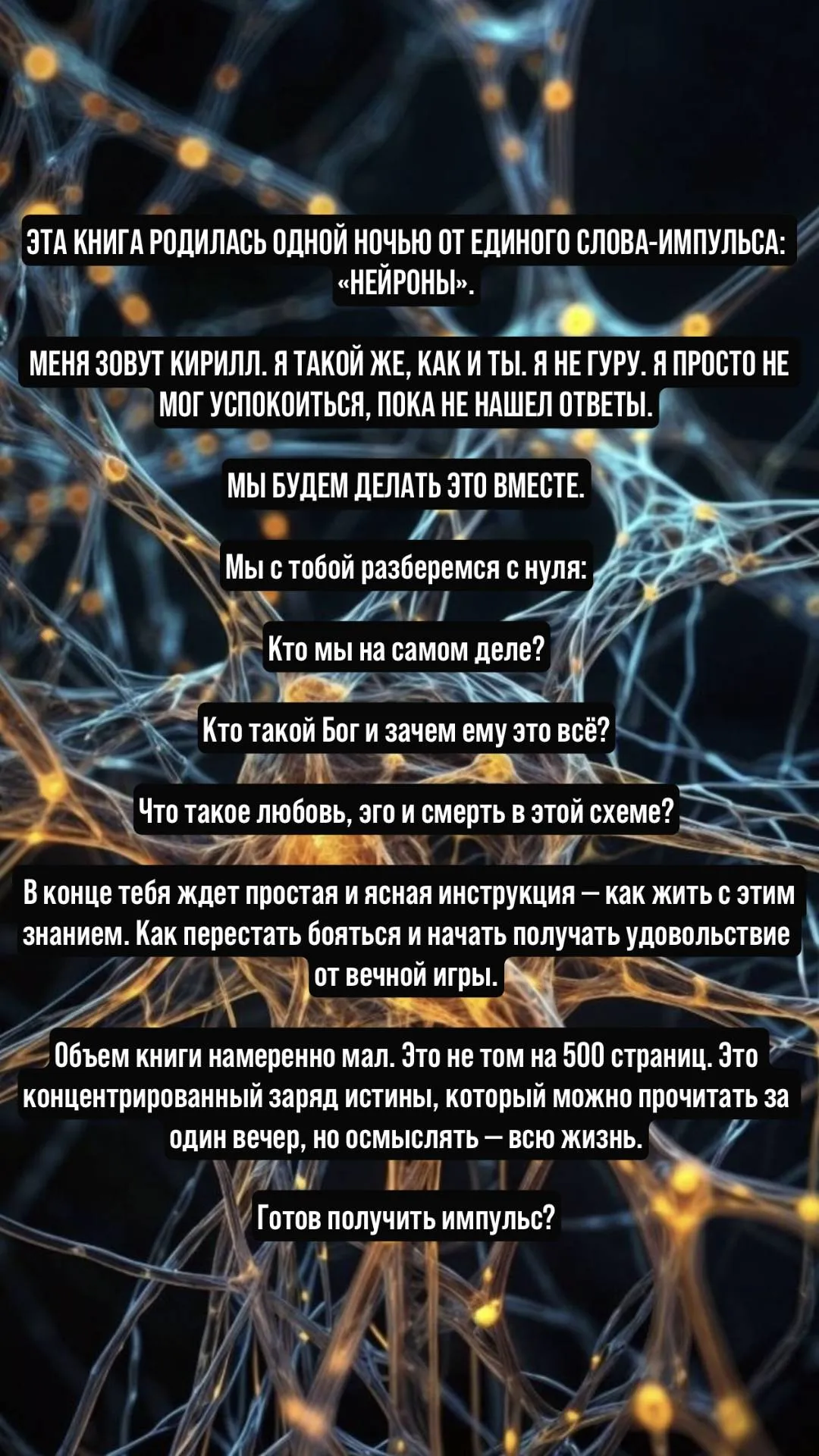 Для начала давай познакомимся. Меня зовут Кирилл. По крайней мере, в этой жизни я ассоциирую себя с этим именем. Я самый обычный человек. Такой же, как и ты. Человек, который забыл, зачем он здесь. Человек, который всегда задавался вопросом смысла своего существования и надеялся получить на него ответ.