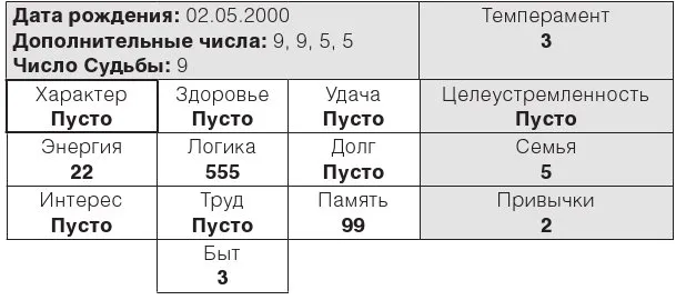 2. Если в «Долге» есть цифры (8 / 88 / 888), мы определяем «Характер» как 11 или второй тип восприятия.