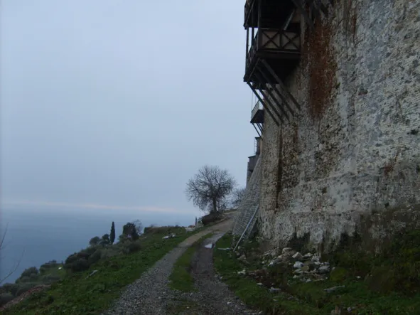 159—164. Она в строительных лесах и с подъемным краном. Как, впрочем, и во многих других монастырях Афона. Идет активная реконструкция, ремонт, восстановление монастырей, келий. Евросоюз дал деньги. Чем все это закончится? Не все монастыри берут деньги. Отказались Хиландар (сербский монастырь, кстати, там потом случился пожар), «зилотский», не признанный Эфсигмену, не поминающий Константинопольского Патриарха. Тот самый, где висит флаг «Православие или смерть!», и живущий напряженной жизнью, находящийся как бы в осаде, готовый в любой момент дать отпор. Ведь были уже попытки захвата властью, церковной и светской. В этом монастыре нет электричества. На службы паломников пускают с ограничениями. Клириков других юрисдикций не пускают. Ночью монастырь напоминает осажденную крепость. Такое ощущение, что здесь как будто не спят. Всю ночь по монастырским темным коридорам ходят монахи, послушники с фонариками.
