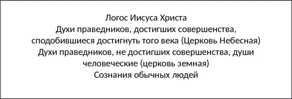 Церковь Небесная является главой церкви земной, которая в свою очередь уже является не совокупностью духов, а по большому счету совокупностью душ человеческих, которые ведут обычный общехристианский образ жизни.
