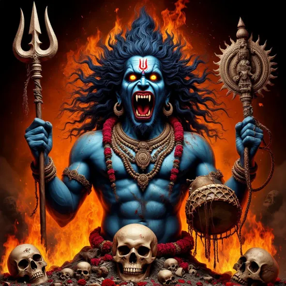Он – сама смерть. Не смерть тела, а смерть иллюзии. Его барабан Дамару звучит как удары сердца вселенной. Каждый удар – это рождение, жизнь и смерть. Каждый удар – это цикл, что исчезает в пепле. И когда звук умолкает, остаётся только пустота.