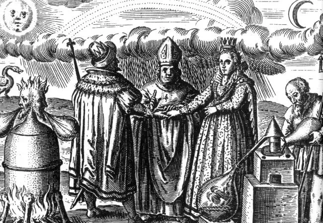 Алхимические процессы и результаты опытов зачастую представлялись в литературе в аллегорической форме как священный союз или брак