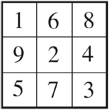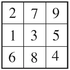 В отличие от классических янтр ведической астрологии23, в которых встречаются двузначные числа, мы используем только цифры. Некоторые цифры получаются из соответствующих двузначных чисел с помощью эквивалентного нумерологического преобразования (сложения). Другое отличие: в нашем случае янтры повернуты на 180 градусов по образцу перевернутой исходной янтры Солнца, представляющей собой базовый квадрат ло-шу. В этом квадрате отражена даосская идея о том, что вселенское начало «ян» (девятка, огонь) должно преобладать, то есть быть выше начала «инь» (единица, вода).
