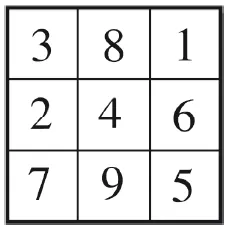 Янтра Раху, или квадрат из девяти летящих звезд для 2006 и 2015 годов. Опирается на цифру 8, а сумма цифр любого ряда равна 9.