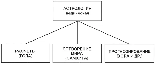 Ведическая астрология – это великое духовное (трансцендентное) знание. Она имеет теоретический и прикладной аспекты. Каковы же главные составляющие практической астрологии? Первая, основная ее задача – это прогноз событий в судьбе отдельного человека (этот раздел астрологии на санскрите называется хора); другая – прогноз событий в мире, в жизни страны или сообщества (санскр. самхита). Наконец, астрономические представления и математические расчеты образуют третий, вычислительный раздел практической астрологии (санскр. гола), включающий небесную механику (вычисление положения светил на небе, или сиддханту) и расчеты гороскопов, или небесных карт (санскр. ганита).