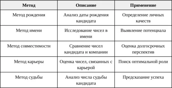 Таблица 3 – Примеры использования нумерологии в подборе персонала