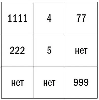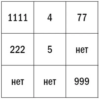 3-й столбец – (77, нет, 999).