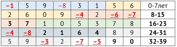 После чего приводим к интервалу от 0 до 9, т. е. складываем между собой столько раз, сколько потребуется для конечного результата. Для того чтобы рассчитать планетарные годы, нам необходимо балльность года умножить на «общий итог».