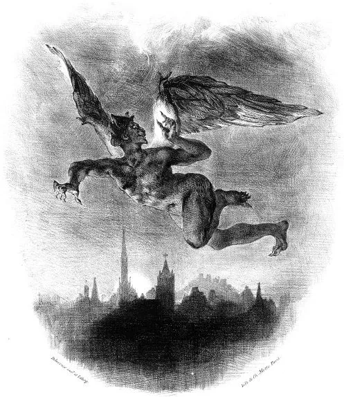 Зловещий Мефистофель пролетает над Виттенбергом в литографии Эжена Делакруа