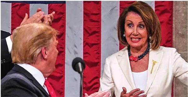 На обоих фотоснимках изображена Нэнси Пелоси, спикер палаты представителей Конгресса США. На первом снимке Дух этой женщины (которая, по сути, явилась инициатором процедуры импичмента действующему президенту США Дональду Трампу) находится на максимальной высоте! Ещё бы, ведь возглавляемая ею нижняя палата Конгресса, большинством голосов объявила импичмент президенту США! Однако, для того, чтобы выразить недоверие Дональду Трампу окончательно, требовалось аналогичное большинство в Сенате, верхней палате Конгресса.